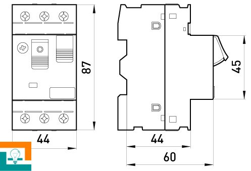 Автоматический выключатель защиты двигателя e.mp.pro.0.63, 0,4-0,63А предназначены для пуска и защиты от перегрузки электродвигателей небольшой мощности. Применяются как аварийный или главный выключатель. Выполняют функции: электротепловой защиты трех фаз; защиты от обрыва фаз. Обеспечивает защиту от КЗ, установка срабатывания Im=13 In. Номинальный ток электротепловой защиты устанавливается с помощью регулировочного диска. Включение двигателя осуществляется с помощью кнопки «пуск». Отключение осуществляется вручную нажатием на кнопку «стоп», либо автоматически при срабатывании термомагнитной защиты или расцепителя минимального напряжения.