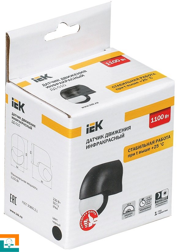 ДАТЧИК ДВИЖЕНИЯ 1100W(600VA) 10м ІP44 ІЕК ДД 010 черный 180" LDD10-010-1100-002