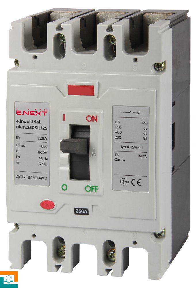 Силовой автоматический выключатель e.industrial.ukm.250SL.125, 3р, 125А предназначен для защиты электрических цепей от длительных перегрузок и токов короткого замыкания, а также для оперативного включения и отключения участков электрических цепей переменного тока частотой 50 Гц напряжением до 660 В.