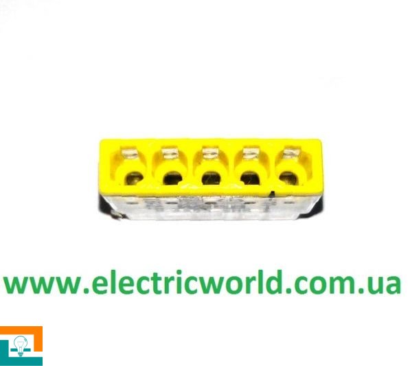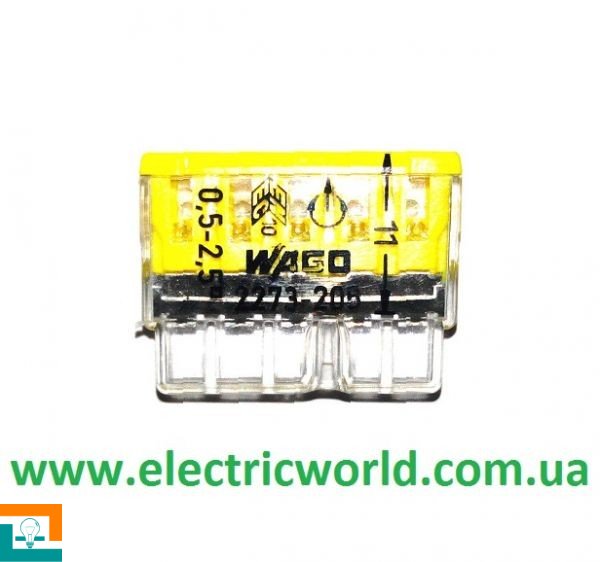 КЛЕММА соединительная для коробок Wago 2273-205 5*0,5-2,5 кв.мм прозрачная/желтая