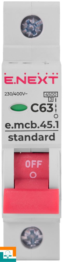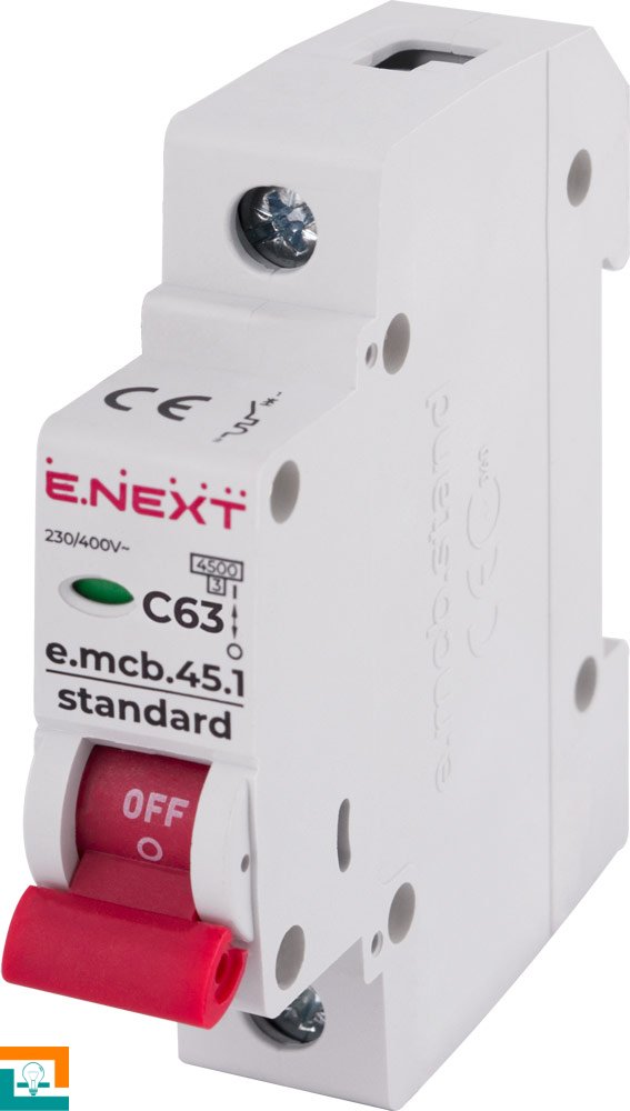 ВЫКЛЮЧАТЕЛЬ АВТОМАТИЧЕСКИЙ 1-полюсный E.Next 4,5кА s002014 63A e.mcb.stand.45.1.C