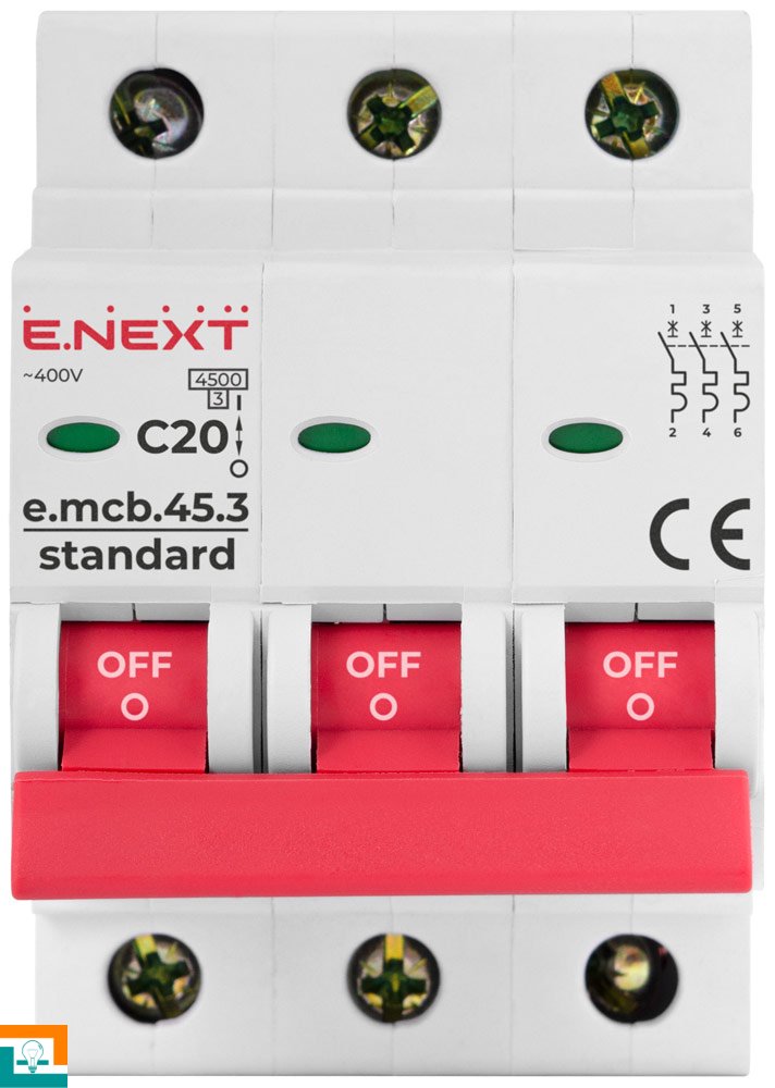 ВЫКЛЮЧАТЕЛЬ АВТОМАТИЧЕСКИЙ 3-полюсный E.Next 4,5кА e.mcb.stand.45.3.C. 20 s002032