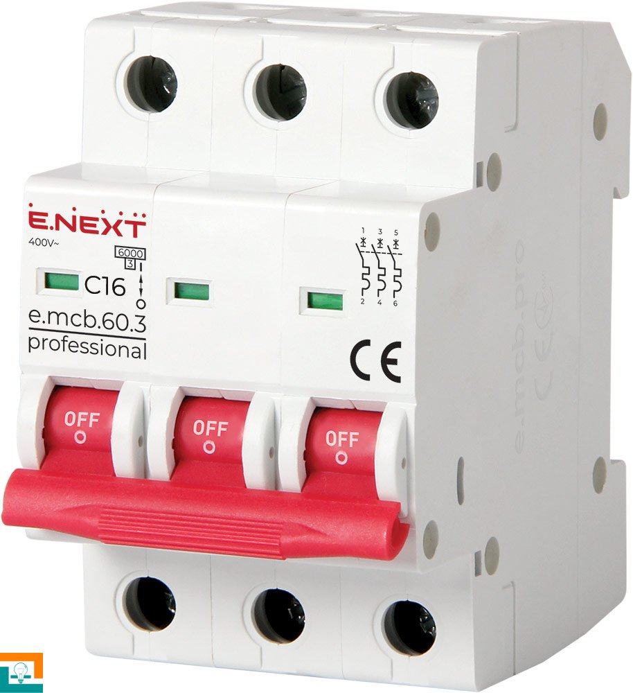 ВЫКЛЮЧАТЕЛЬ АВТОМАТИЧЕСКИЙ 3-полюсный E.Next 6кА e.mcb.pro.60.3.C. 16 new p042031