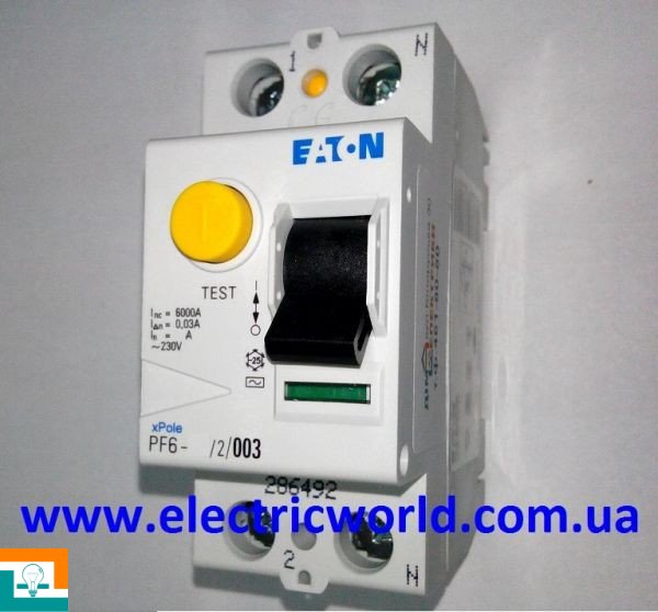 ДИФФЕРЕНЦИАЛЬНОЕ РЕЛЕ 2-п Eaton 6kA PF6/2 25/0,03А 286492