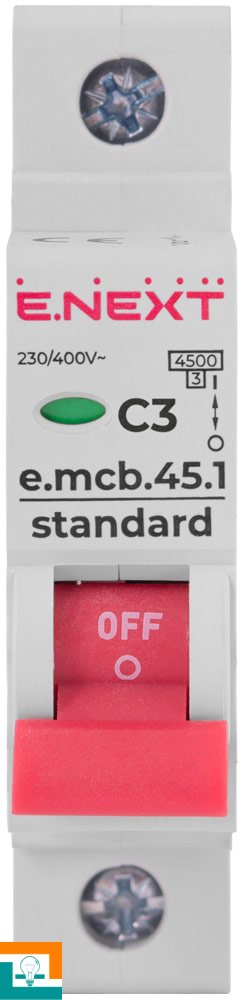ВИМИКАЧ АВТОМАТИЧНИЙ 1-полюсний E.Next 4,5кА s002003 3A e.mcb.stand.45.1.C
