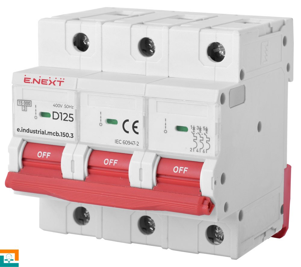 ВИМИКАЧ АВТОМАТИЧНИЙ 3-полюсний E.Next 15кА e.industrial.mcb.150.3.D.125 i0630012