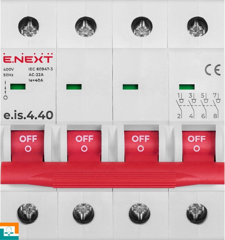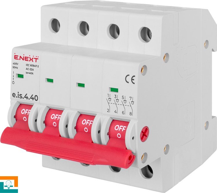 Вимикач навантаження на DIN-рейку e.is.4.40, 4р, 40А призначені для комутації електричних ланцюгів, захищених від струмів короткого замикання і перевантажень.