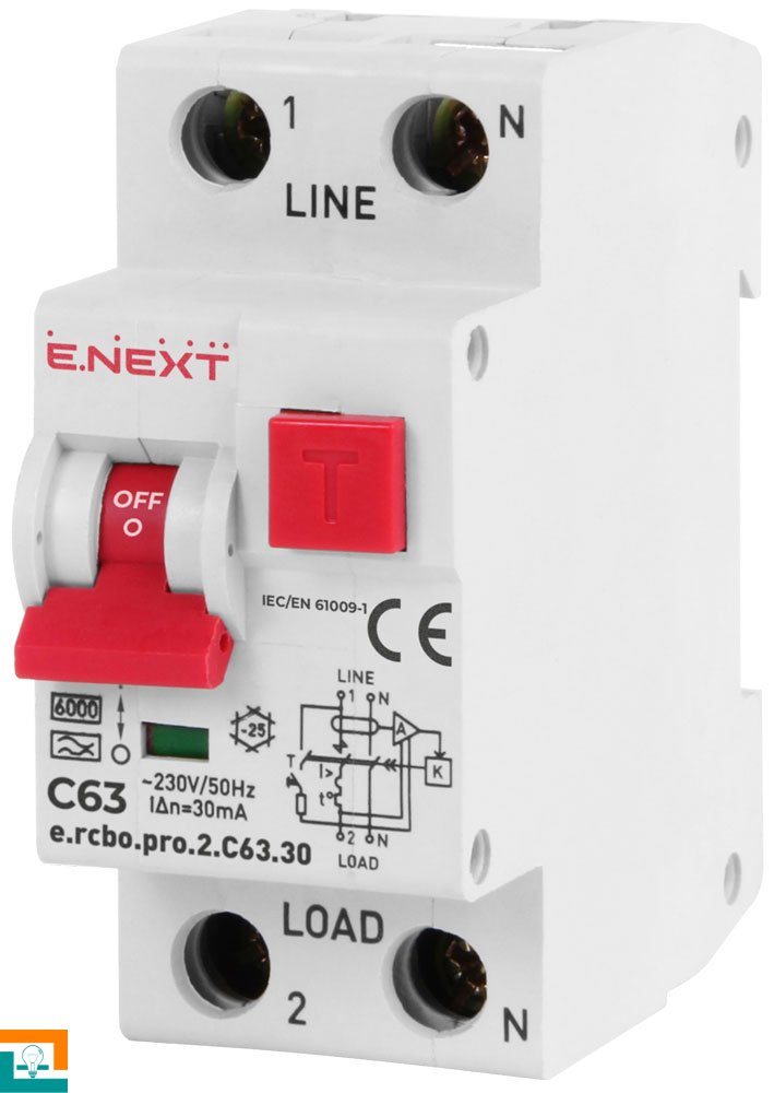 ДИФЕРЕНЦІЙНИЙ АВТОМАТ 1+N 63/0,03А E.Next 6kA A p0720014 e.rcbo.pro.2.C63.30